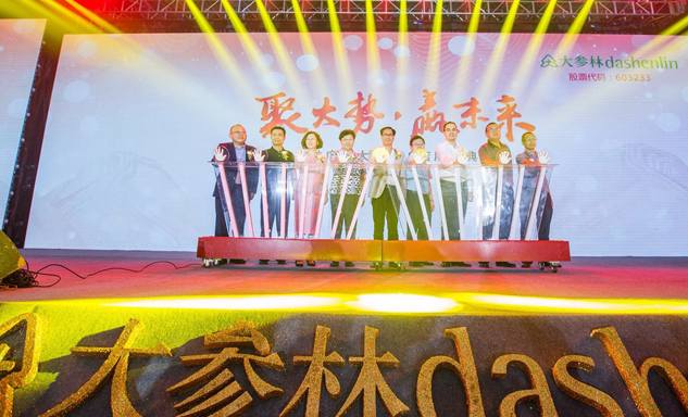 东升国际药业集团董事长刘景萍女士与大参林医药集团董事长柯云峰先生、中国医药商业协会执行会长付明仲女士等嘉宾共同开启了“聚大势•赢未来"大参林工商合作峰会的大幕。